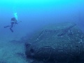 La Barge de l’Insuma (MFP-366) repose elle sur un fond de 70 mètres à l’envers et donc réservée aux plongeurs Trimix normoxique. C’est un grand parallélépipède avec à sa poupe trois arbres d’hélices et deux gouvernails. La barge est vide, il n’est pas nécessaire de vouloir la pénétrer, Il faudra faire attention à deux grands filets qui remontent vers la surface et surtout à son temps de plongée.