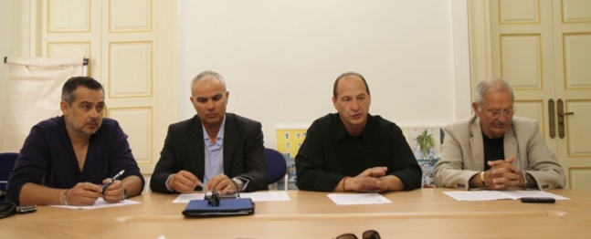 François Gabrielli en charge du commerce et artisanat, Sauveur Linza directeur général-adjoint, Charles Vitali délégué aux associations et au personnel, Toussaint-Mathieu Lucciani responsable de services des halles et marchés (Photo Marilyne SANTI)