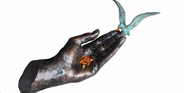 Ce sont 38 pièces récentes réalisées par l'artiste sculpteur et bronzier qui sont parties en direction de la Russie. Parmi elles figurent 4 peintures sculptées, des sculptures contemporaines, mais aussi 20 oeuvres pour lesquelles Gabriel Diana a réalisé un magnifique mariage entre bronze et ambre. Association particulièrement réussie entre ces deux matériaux, qui donne des sculptures élégantes, racées et d'une grande originalité. On peut admirer plusieurs mains, de tailles différentes, soupesant des pépites d'ambre, un arbre de bronze au feuillage d'ambre, un "Sisyphe" portant un rocher d'ambre... De très belles pièces à l'esprit novateur, comme sait les réaliser Gabriel Diana et qui mêlent savoir-faire, contemporanéité et poésie. Du bien bel ouvrage!
