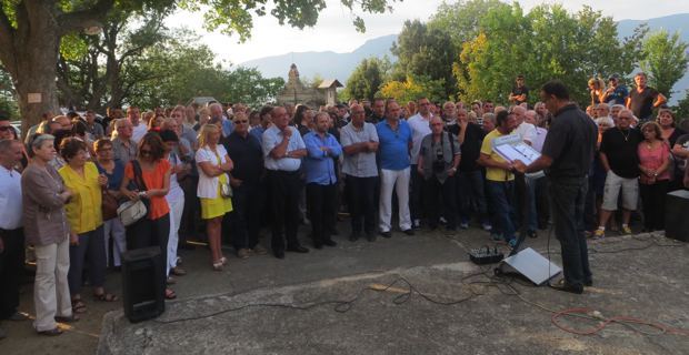 « Par notre présence, Femu a Corsica est heureux de pouvoir dire l’attachement indéfectible et passionné à la cause défendue à Campile, à un territoire auquel certains d’entre nous ont des attaches fortes, familiales et amicales, à l’idée que la Corse et les territoires ruraux doivent trouver un chemin vers le développement, la cohésion sociale et l’harmonie. Un chemin qui ne soit pas un chemin imposé, mais un chemin défini et voulu par les habitants et les territoires eux-mêmes. Le peuple corse a inventé, collectivement, des territoires pertinents à une époque où on ne parlait même pas d’intercommunalité, un mode d’urbanisation, un rapport au territoire, une façon de l’aménager à l’époque où on ne parlait pas encore de PLU. Parce que cela fonde notre histoire, notre rapport à cette terre et notre façon d’être en général, cela résiste à tous les schémas qu’on voudrait nous imposer. Nous soutenons le combat de Jean-Marie parce qu’il est juste et parce qu’il est aussi un combat pour la Corse toute entière. Ce qui est important, c’est que les Corses, réunis dans la diversité de leurs idées, sont présents, nombreux, et veulent se faire entendre de l’Etat français et d’un Préfet pour qu’ils prennent en compte la voix de la terre, des gens et des Corses. »