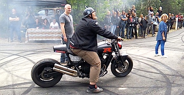Après le passage de Fat Gregg, c'est une course du deux roues le plus lent qui fut organisée avec un arbitre de taille, le président "himself" du MC LVR Nicolas Rao. Puis vint le concours de la plus belle moto remporté non par vote ou jury mais au nombre de décibels d'applaudissements émis à l'énoncé du numéro de la moto concourante. "Pti Pierre" remporte avec brio , juché sur son 1000 fonte, ce concours.