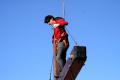 Gilbert Giacometti, aux commandes de l’hélicoptère se présentait au-dessus du piton rocheux, la lourde croix de 8 m de long pour 5 mètres d’envergure et un poids total de 830 kg, suspendue à sa machine. Guidé au sol, tel un métronome, il réussissait en quelques minutes à poser la croix dans son socle, avant de décrocher. Au sol, l’équipe fixait les sangles provisoires, en attendant de fixer le câblage en acier.