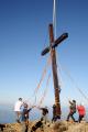 La croix de 7 mètres de haut pour un bois total de 400 kg , réalisée à Voralberg en Autriche a été déposée par un groupe d’une vingtaine d’hommes, en un temps record de 2 heures et 15 minutes et montée sur place.
