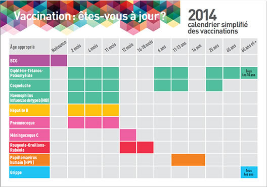 Chaque année le ministère de la santé présente un nouveau calendrier des vaccinations, qui permet de connaître les vaccins à effectuer et à quel âge.