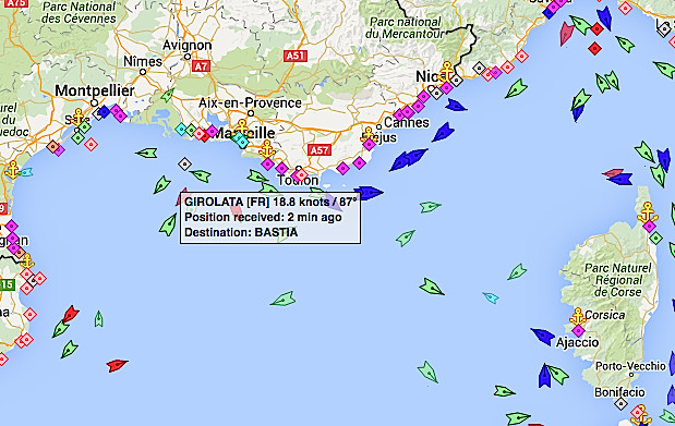 Certes le Girolata, qui a quitté Marseille samedi vers 18 heures, a bien mis le cap sur Bastia où il devrait arriver ce dimanche matin vers 6 heures, mais…