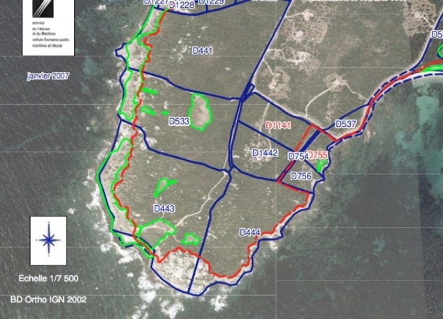 • Le littoral Sud-Est de la pointe de Capi Neru, pour lequel l’arrêté transfère la servitude de passage (parcelles D755 et D756) ;