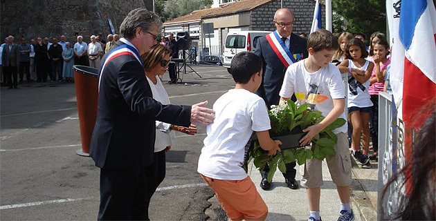 Après cette manifestation, le cortège, précédé des drapeaux et des associations patriotiques et des délégations des militaires de la base aérienne 126 et de gendarmes, s'est dirigé vers l'école Joseph Pietri en compagnie de quelques classes d'élèves de cet établissement. Devant la plaque rappelant l’héroïsme de ce grand résistant que fut Joseph Pietri, le maire, en compagnie d'élèves, accrocha deux gerbes de fleurs pour honorer sa mémoire. C'est par un apéritif au bar "chez Maxime", situé en face le groupe scolaire, que cette cérémonie pris fin autour d'un rafraichissement.