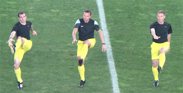 C'était sans doute pour se donner un peu de courage, après avoir accompli en parfaite harmonie avec ses deux assistants ses exercices d'échauffement.