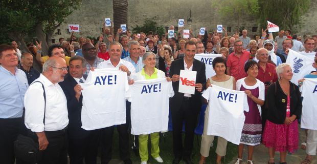 Les participants ont, ensuite, posé devant l’objectif avec des pancartes marquées : « Yes », « Aye » et « Si », et envoyé ce message de soutien aux Ecossais et aux Catalans qui préparent leur référendum d'autodétermination.