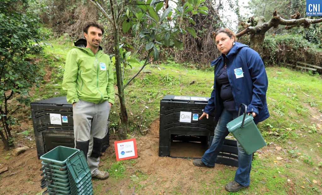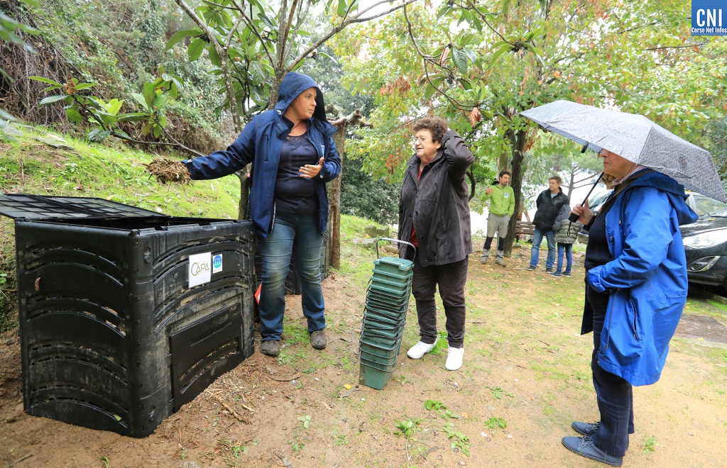 Quand on sait que les  ordures ménagères représentent 30% à 40% des déchets, on mesure toute l’importance du tri. La Corse y travaille, notamment les grandes villes et le compostage peut constituer, à terme, une solution pérenne. Dans le quartier des Jardins de l’Empereur, à Ajaccio, Claudine Tomasi, présidente de l’association éponyme a sollicité, prenant conscience de cette situation, le Centre Permanent d’Initiative à l’Environnement (CPIE) pour l’installation d’une structure dédiée au compostage près de l’immeuble Jérôme.Une initiative validée en Assemblée Générale, par la copropriété. Ce mercredi, et malgré la pluie, Ghislain Berlaud et Emilie Dromard, membres du CPIE sont venus installer deux bacs.