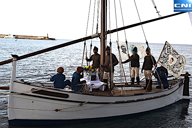 C'est à bord du navire Elizabeth II que " I Naziunali" et les cendres ont accosté au môle de Lisula et accueillis par le chant " o Generale" du groupe Voce Ventu, bande originale du film " Les Exilés".