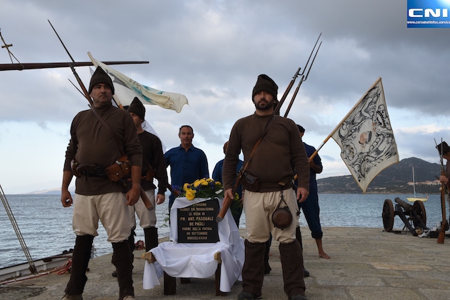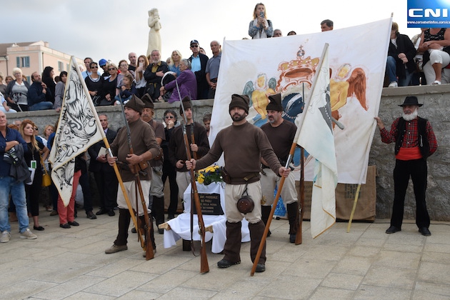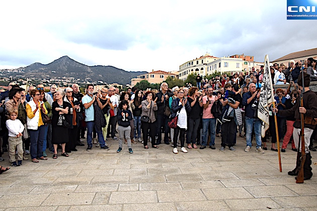 Avant de rejoindre l'église de l'Immaculée Conception où une messe a été célébrée par le père Marcin Monca, les gardiens de Paoli, ont sillonné les rues de la vielle ville accompagnés d'une immense foule, pour faire escale au pied de la fontaine des quatre becs, sous le buste de Pascal Paoli.
