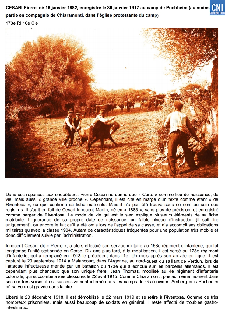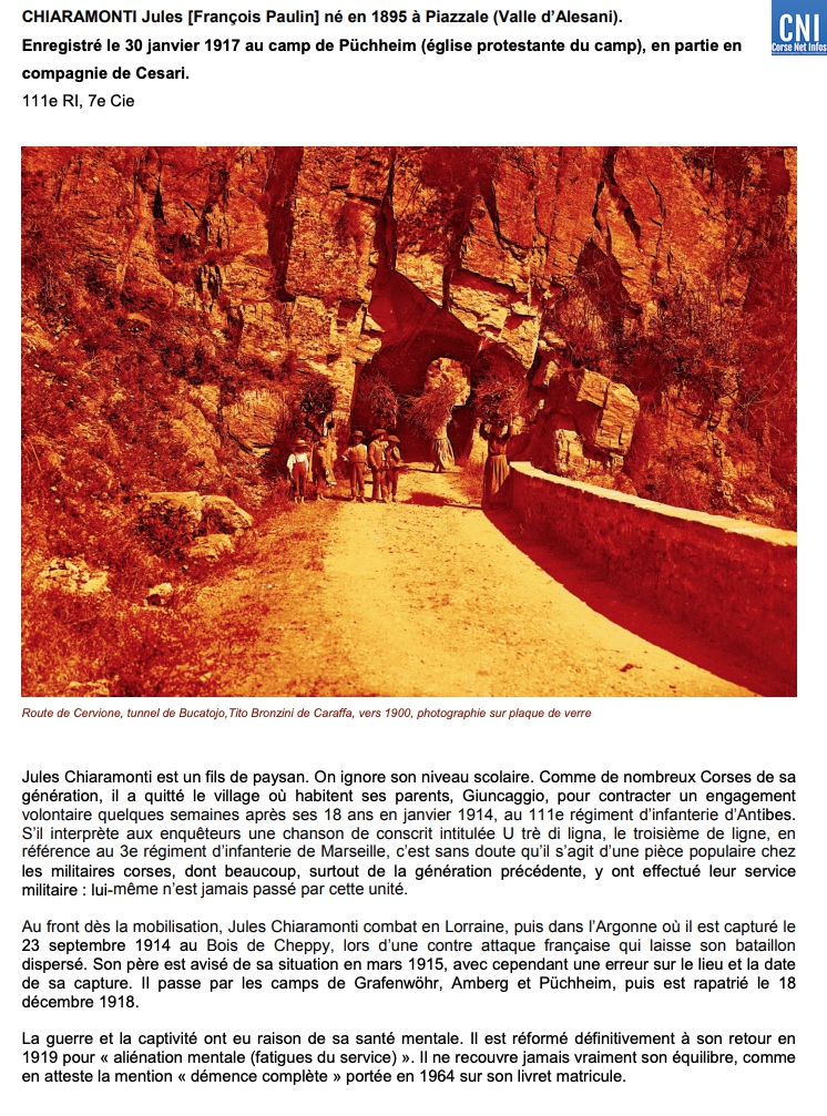 L'enquête complète et les chants, émouvants des soldats corses prisonniers en suivant ce lien :