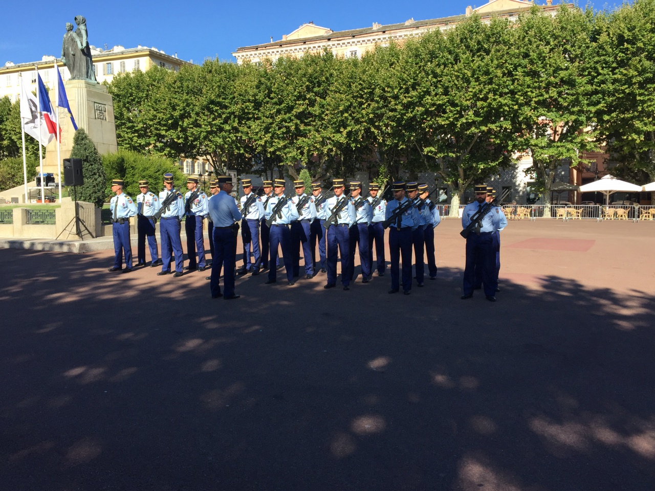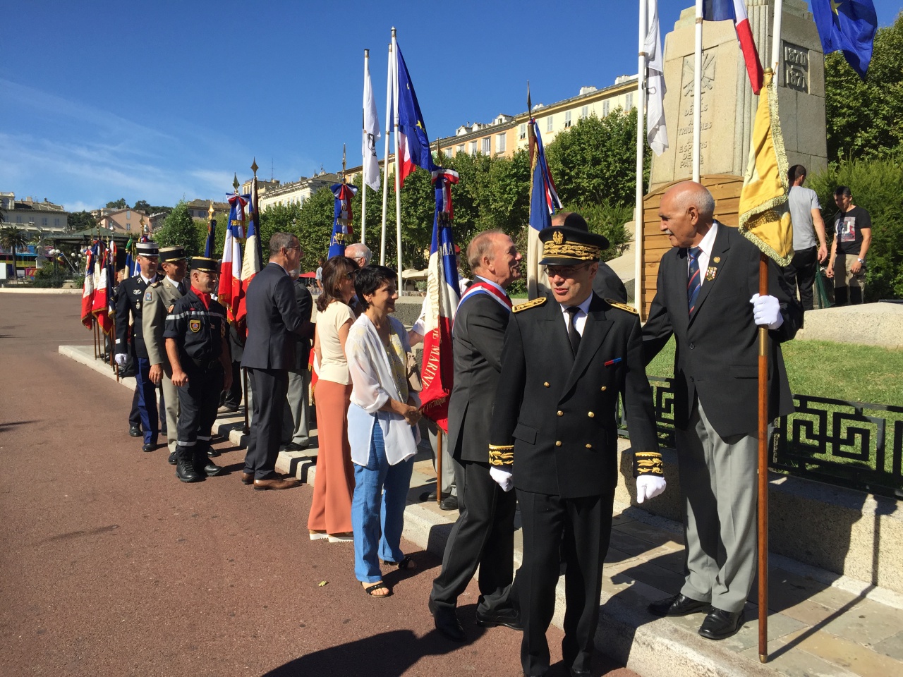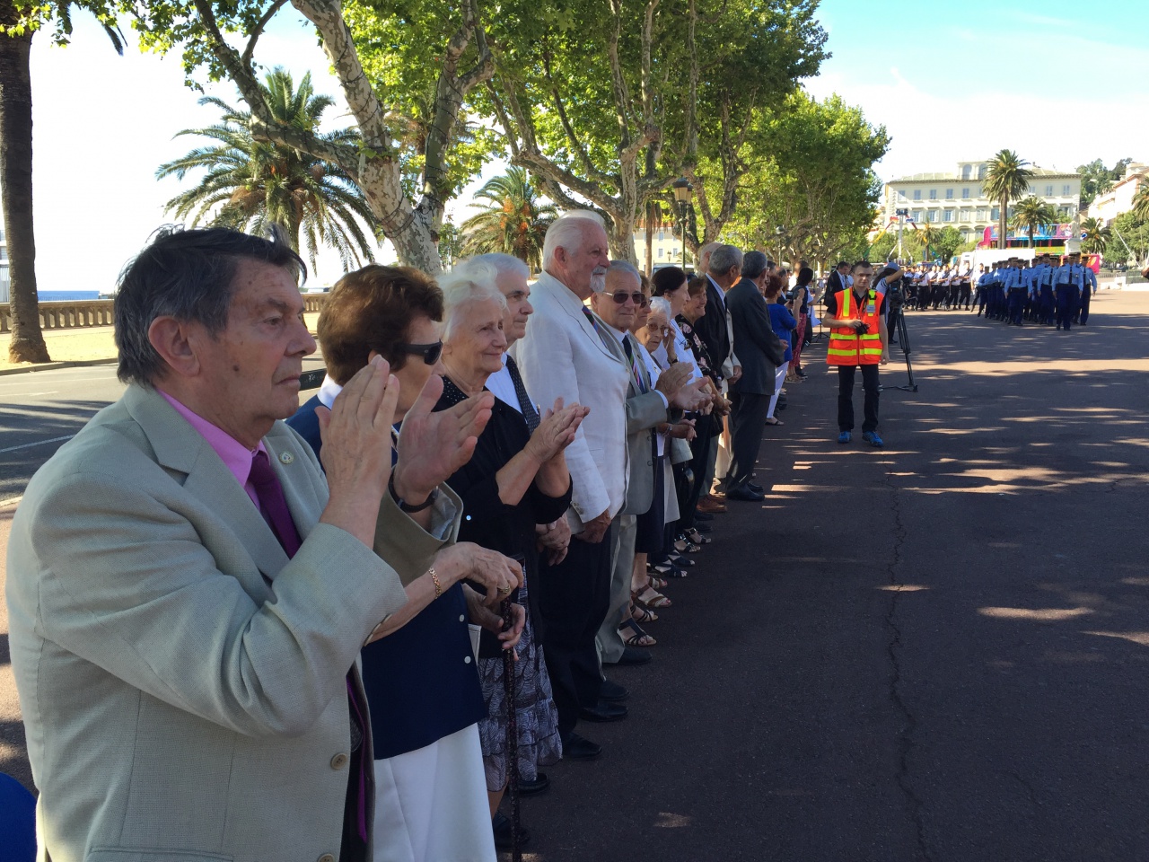 Alain Thirion, préfet de Haute-Corse, Pierre Savelli, maire de Bastia, Sauveur Gandolfi-Scheit député-maire de Biguglia, Dominique Schuffenecker secrétaire général de la préfecture de la Haute-Corse, Fabiana Giovannini, représentant la Collectivité territoriale de Corse et Sylvie Retali-Andreani, représentant le conseil départemental, ont salué un grand nombre d’anciens combattants de Haute-Corse venus assister et rendre hommage au passage en revue des troupes qui, comme il rappelle un ancien militaire « œuvrent chaque jour pour notre sécurité. »