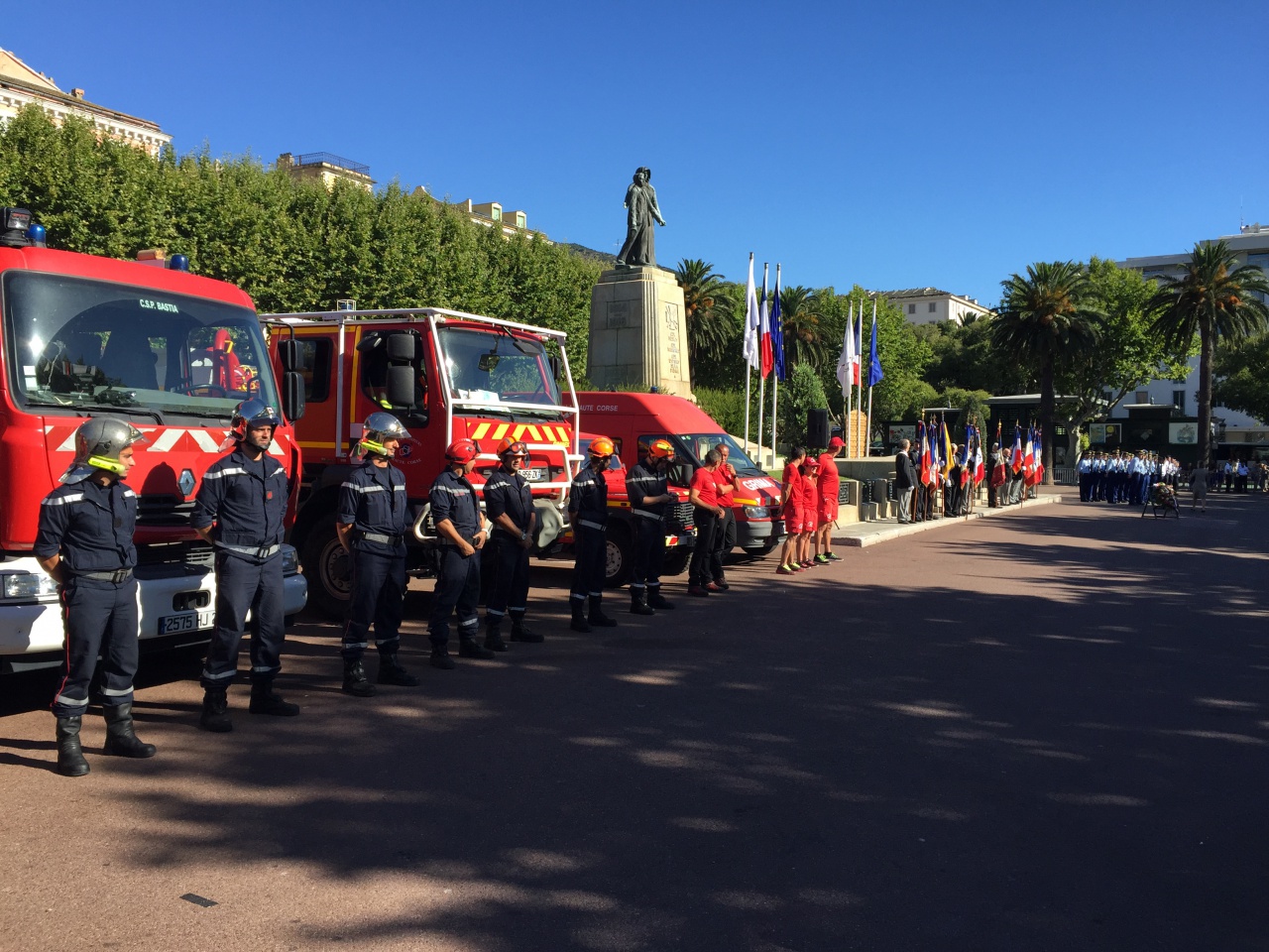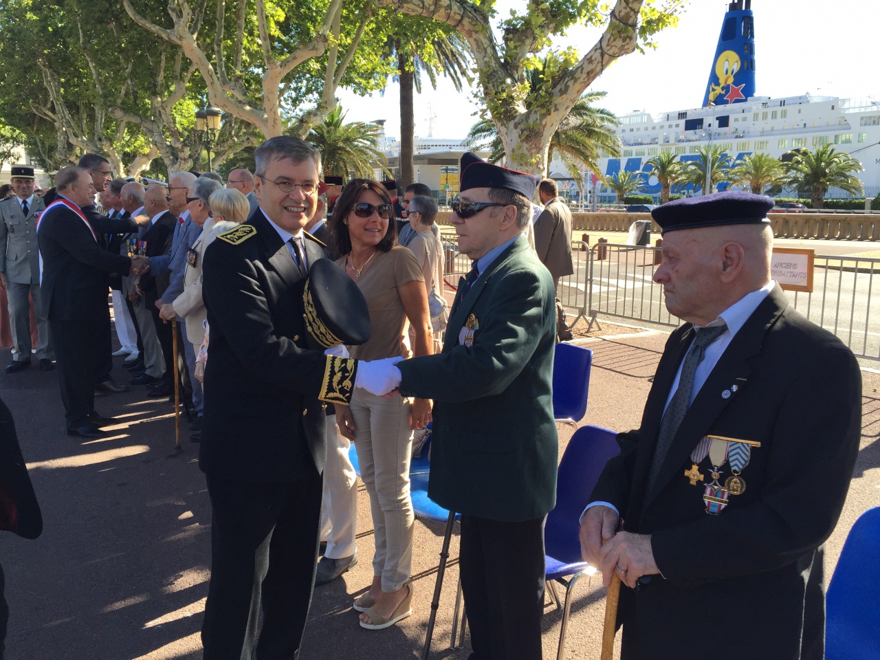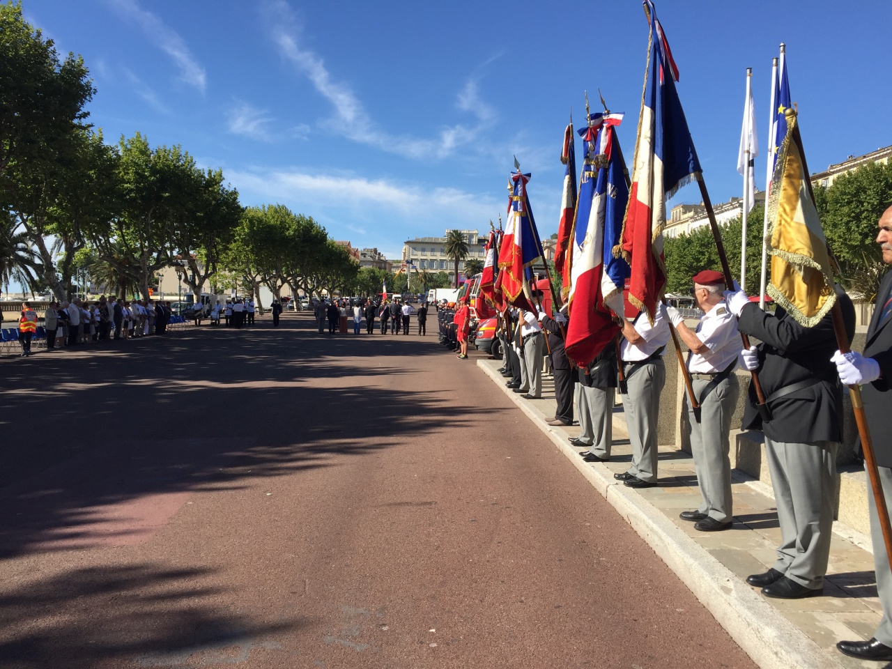 Alain Thirion, préfet de Haute-Corse, Pierre Savelli, maire de Bastia, Sauveur Gandolfi-Scheit député-maire de Biguglia, Dominique Schuffenecker secrétaire général de la préfecture de la Haute-Corse, Fabiana Giovannini, représentant la Collectivité territoriale de Corse et Sylvie Retali-Andreani, représentant le conseil départemental, ont salué un grand nombre d’anciens combattants de Haute-Corse venus assister et rendre hommage au passage en revue des troupes qui, comme il rappelle un ancien militaire « œuvrent chaque jour pour notre sécurité. »