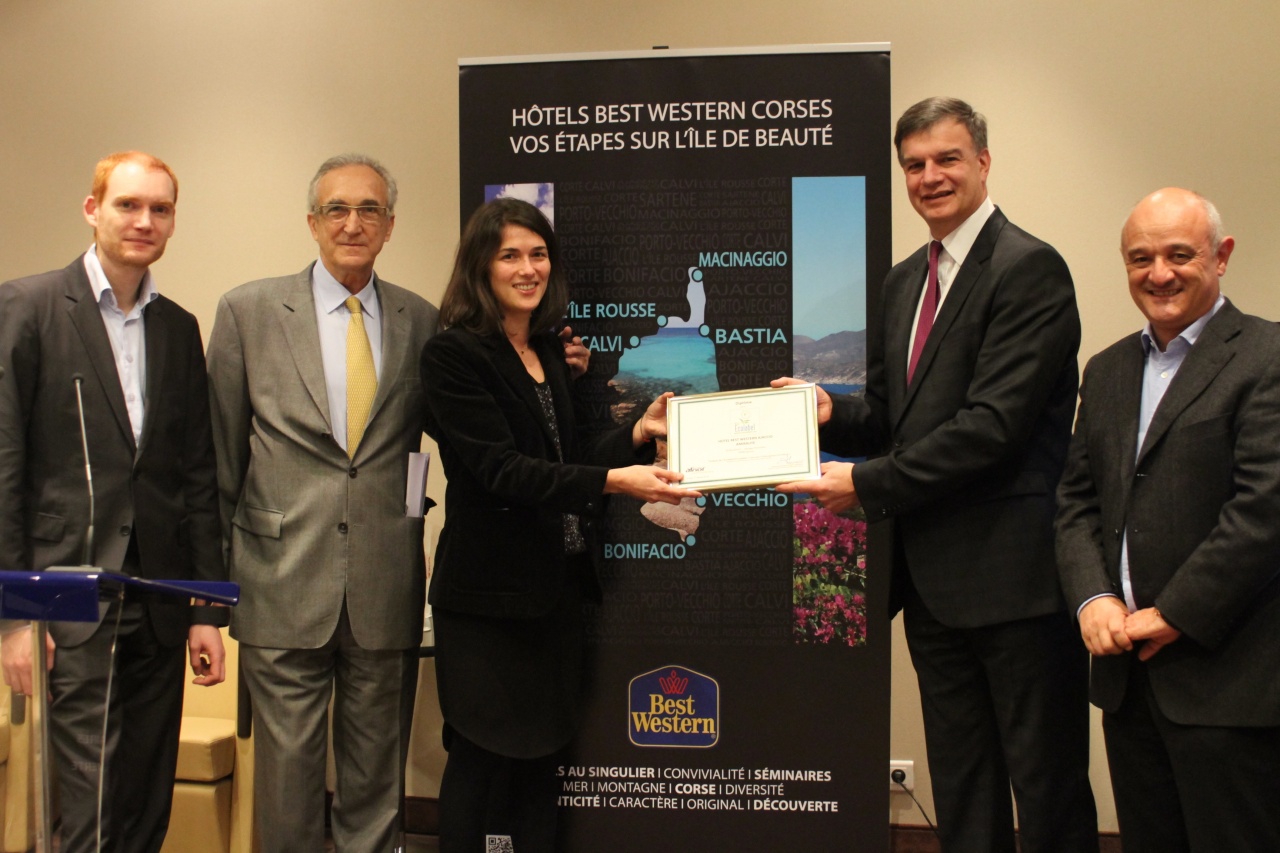Jean-Nicolas Antoniotti et Bernard Faraud n’en sont pas peu fiers : l’hôtel Best Western-Amirauté, dont ils sont les propriétaires à Ajaccio, est le premier hôtel de Corse à recevoir l’écolabel européen. Au début l’idée a germée un peu comme un pari, un pari raté d’ailleurs la première fois. Puis, riches d’une nouvelle équipe, de nouveaux cadres, convaincus de la nécessité de protéger l’environnement, les deux fondateurs relancent la machine pour un pari gagné cette fois, preuve en est la remise de ce certificat.