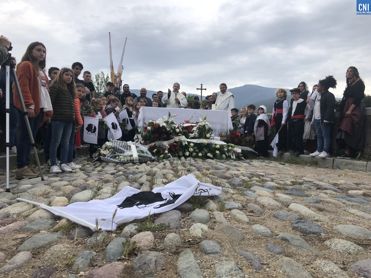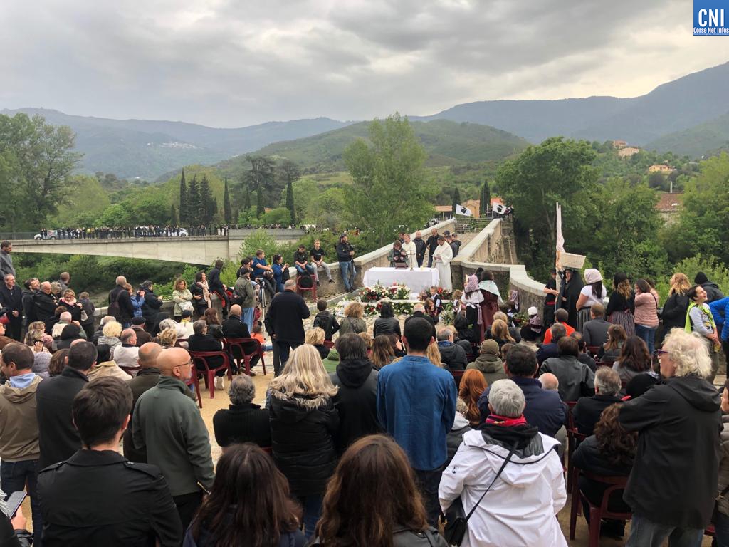 Cusì, à 5 ore, a prima messa celebrata senza u prete Mondoloni ma da u diacunu Pierre-Jean Franceschi, hè stata detta in lingua nustrale, annant'à un latu di u ponte.