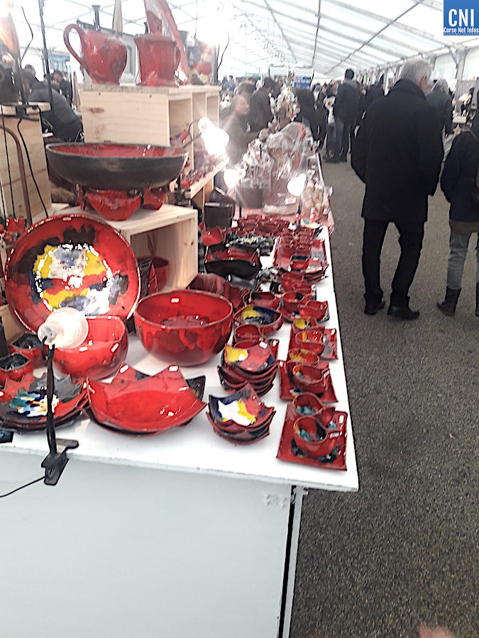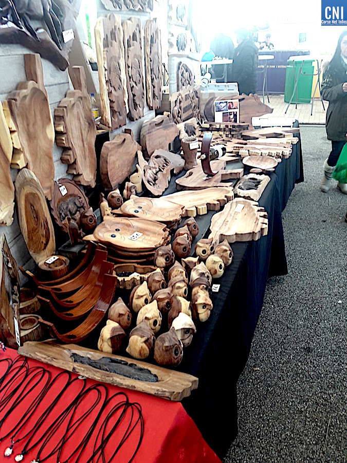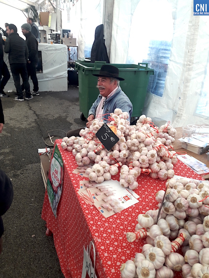Malgré le froid qui a sévit durant tout le week-end, la grêle tombée non loin du village et d’autres manifestations notamment à Ajaccio, la foire de Bocognano a confirmé, si besoin est, qu’elle bien la toute première de Corse en termes de notoriété derrière « A Santa » même si cette dernière rencontre des difficultés. Signe que cette foire, la première des foires à thèmes nées à l’époque du riacquistu, a toujours. Pour preuve, ils étaient entre 15000 et 20000 à prendre le chemin de Bocognano durant tout le week-end. Sous le chapiteau, 132 stands. Sept producteurs de farine de châtaignes, et de la production sous toutes ses formes : miel, vin, huiles, biscuits divers, cédrats confits, terrine. Côté artisanat, poteries, couteaux, bijours, jouets en bois…bref pour tous les goûts et toutes les bourses…Quelques nouveautés, « Callisthé », des thés aux arômes de l’île, « stella inzuccherata », biscuits ou les chocolats de Lionel et Josiane Colomb Bereni. Trois invités : des producteurs venus Venasca (Piémont) une ville jumelée depuis l’an dernier avec Bocognano (fromages, crème de châtaigne, confiserie), les produits des Basques d’Eztigar (piment d’espelette, cidre, charcuterie, fromage) et l’ail rose de Robert Molinier, qui vient pour la troisième fois à Bocognano.