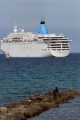 Comme à chacune des escales, les hôtesses de l'Office de Tourisme de Calvi accueillaient à leur arrivée les croisiéristes, pour la plupart des anglais, en leur offrant des dépliants de Calvi et de la Balagne.