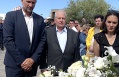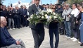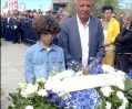 Ici un enfant de quelques années s'agenouille devant la plaque qui au pied de la stèle rappelle sur un bloc de marbre noir les noms des 19 victimes.