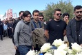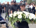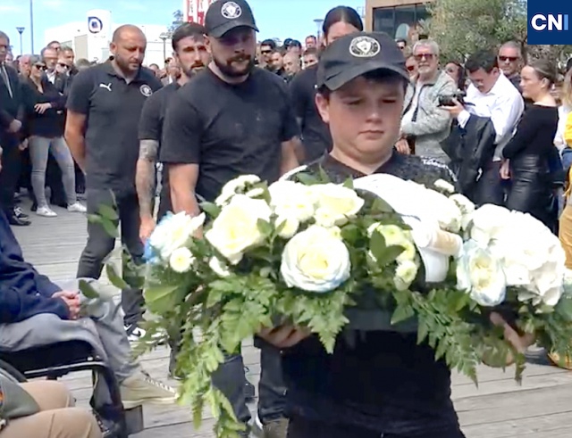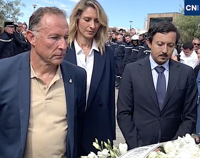 Un peu en retrait; sur son fauteuil roulant, Karine Grimaldi écrase furtivement une larme. Des pères, des pères se succèdent pour, à tour de rôle, venir déposer un bouquet de fleurs.