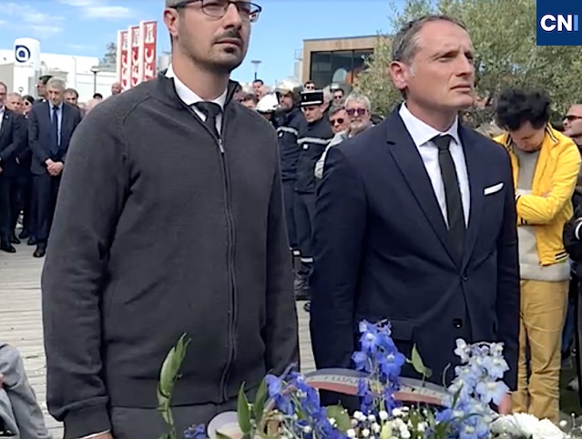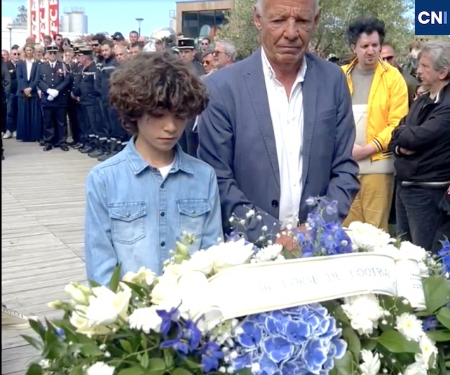 Ghjorghju-Maria au pied de la stèle : les plus jeunes aussi ont prié pour ceux qui ne sont plus. (@cni)