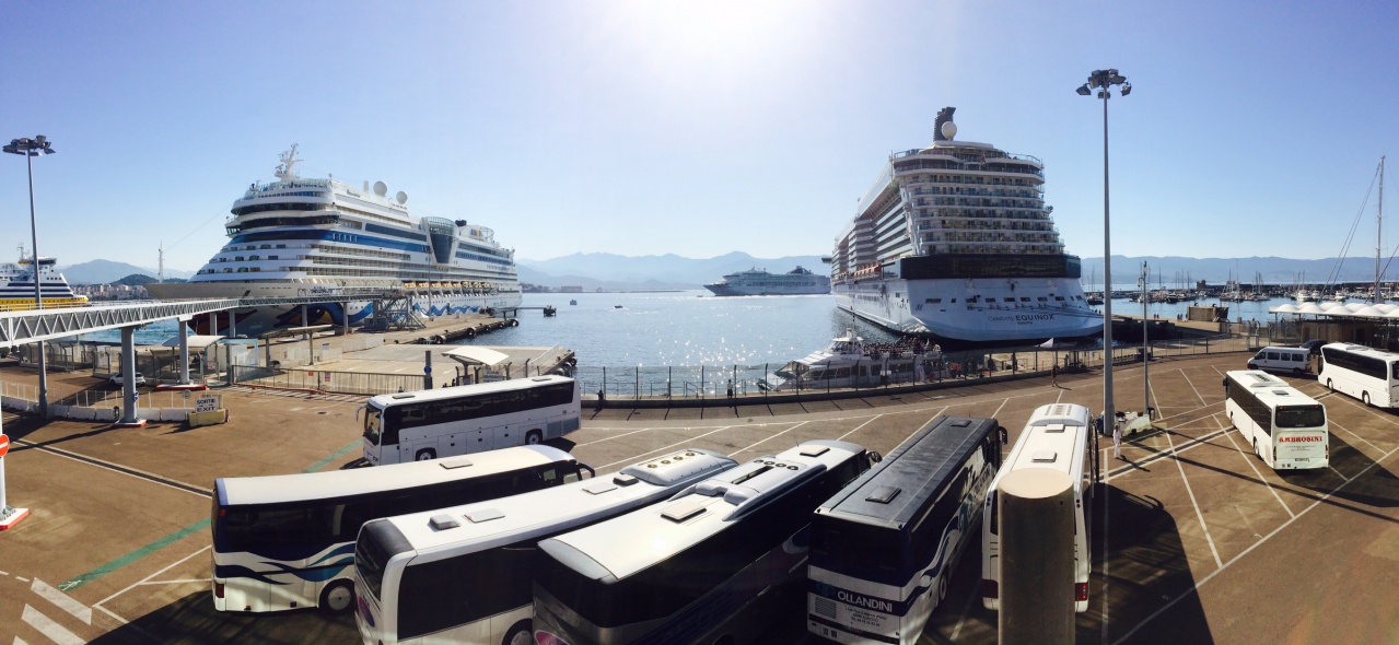 Ce même jour, 3 navires de croisière : l'Aida Blu (2 200 passagers) de la compagnie allemande Aida Cruises, le Celebrity Equinox (2 850 passagers) de la compagnie Celebrity Cruises en phase de devenir le premier armateur Mondial dans son domaine, de haut de gamme, et l'Oceana de P&O Cruises (2 000 passagers) ont permis à plus de 7 000 vacanciers de faire escale dans le port d'Ajaccio.