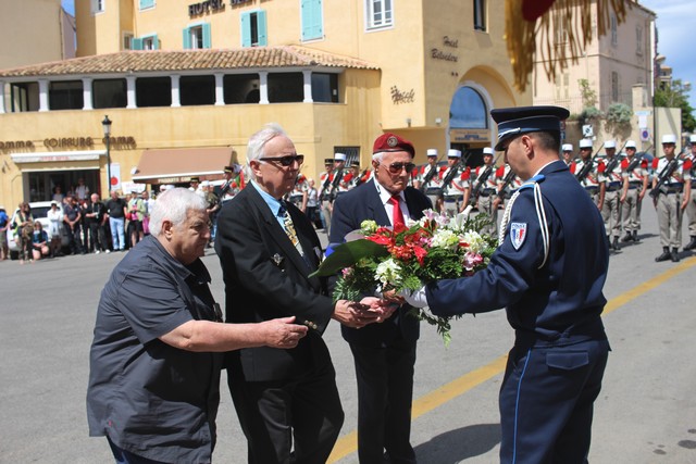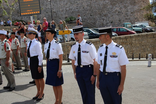 Une première gerbe de fleurs était déposée par Claude Deceuninck entouré d'anciens combattants, suivie de celle de la Municipalité de Calvi avec Ange Santini, Jean-Toussaint Guglielmacci et Jean-Louis Delpoux et de l'Etat avec Anne Ballereau, lT Colonel Le Segretain du Patis et Cpt Veyre, commandant en second de la Gendarmerie de Calvi.