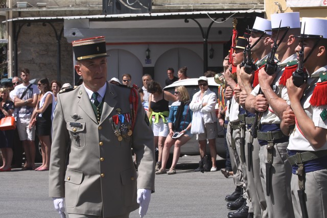 Le lieutenant-colonel Olivier Le Segretain du Patis, commandant par suppléance le 2e Régiment Etranger de Parachutistes, passait les troupes en revue, avant le salut aux drapeaux des Anciens Combattants.