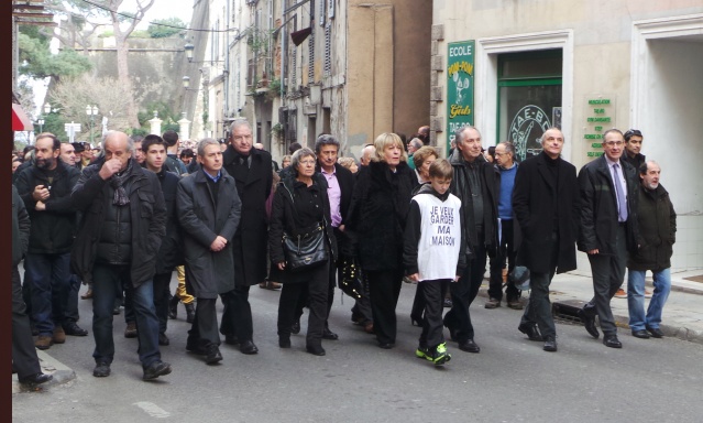 En tête du cortège, entourant Me Alain Spadoni et Louis Orsini, les représentants des 47 associations qui ont rejoint le collectif de la société civile, la Ligue des droits de l’Homme, les Chambres consulaires de commerce et d’agriculture, et surtout la classe politique presque au complet. Tous les leaders et élus nationalistes et toute la droite insulaire, députés et président du conseil général de la Corse-du-Sud en tête, étaient au rendez-vous. Si peu de leaders de gauche, à l’exception notable du maire d’Ajaccio, Simon Renucci, ont fait le déplacement, en revanche de nombreux conseillers généraux, maires et conseillers municipaux Giacobbistes se sont mêlés à la foule.