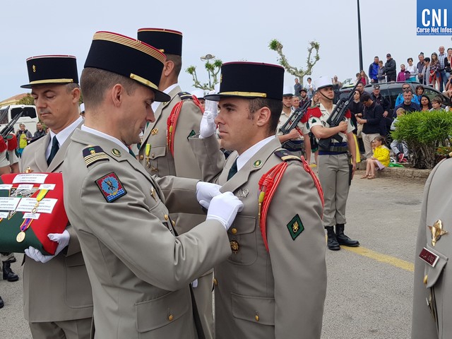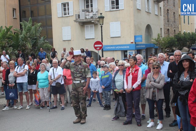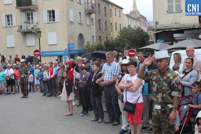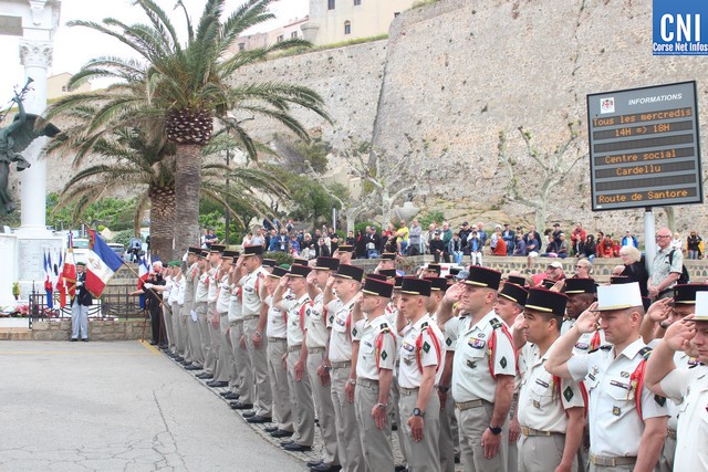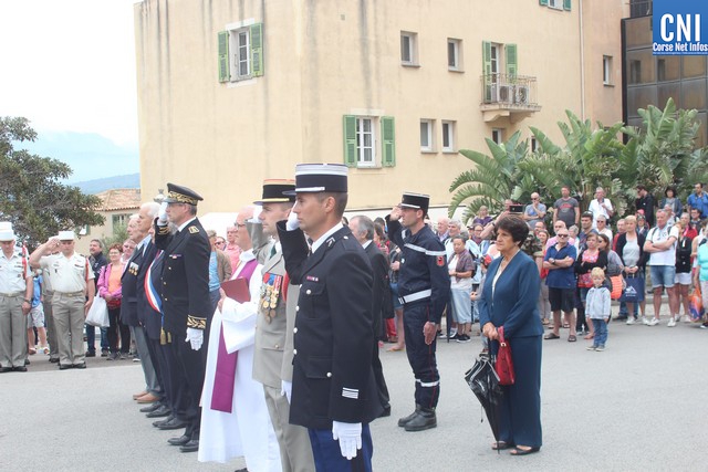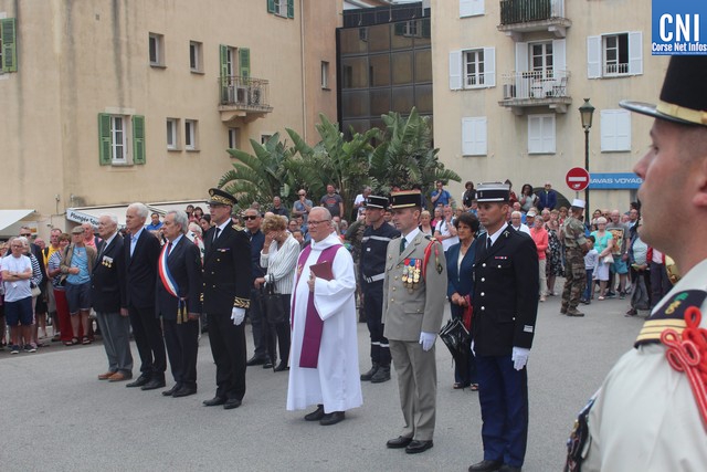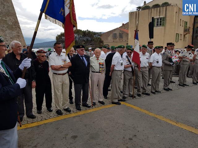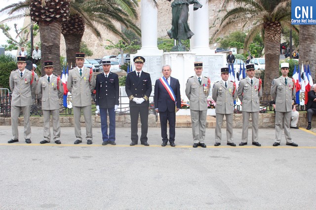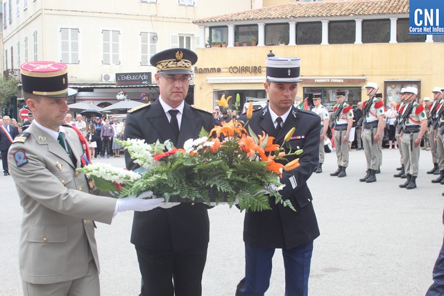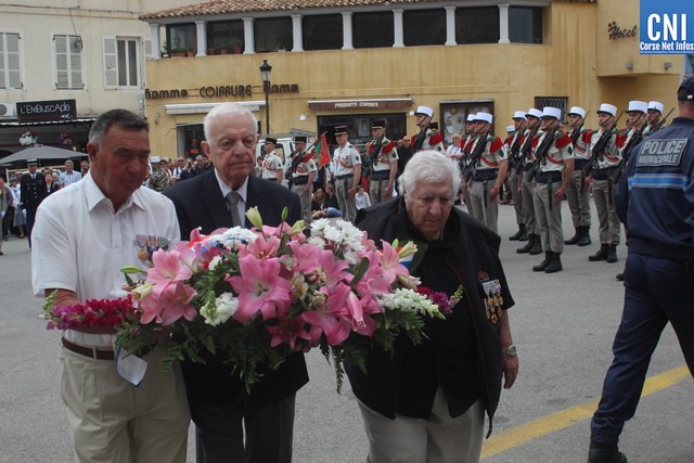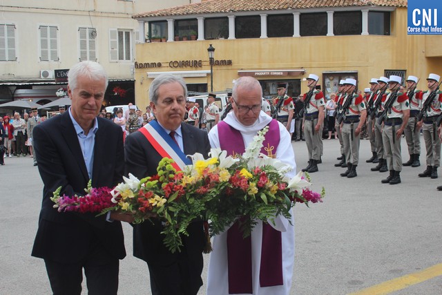 Des gerbes étaient ensuite déposées par les anciens combattant, puis celle de la Ville de Calvi par le maire Ange Santini, son adjoint Jean-Louis Delpoux et l'Abbé Valery, suivie de celle de l'Etat avec Jérôme Seguy, sous-préfet, le colonel Jean de Monicault, chef de corps du 2e REP et le chef d'escadron Olivier Burles, commandant la Compagnie de gendarmerie de Calvi.