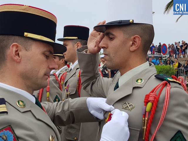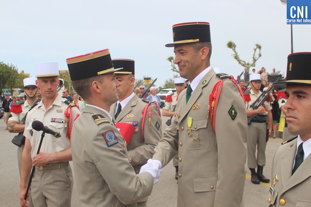 Le colonel Jean de Monicault, chef de corps du 2e REP de Calvi passait les troupes en revue, avant de procéder à une remise de décorations: