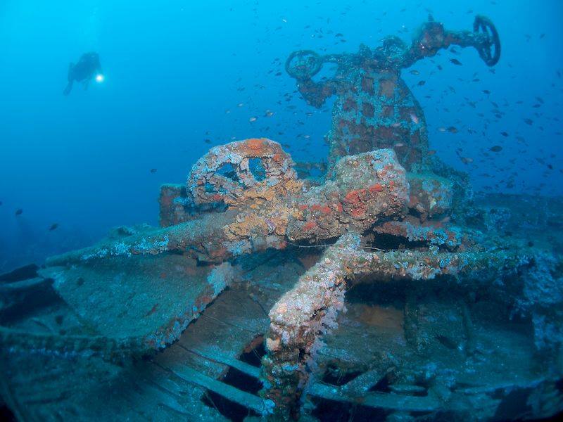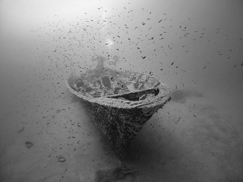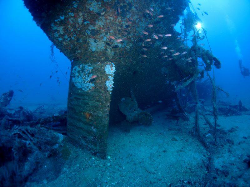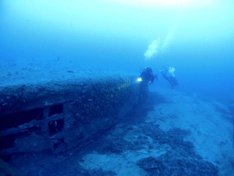 La Barge de l’Insuma (MFP-366) repose elle sur un fond de 70 mètres à l’envers et donc réservée aux plongeurs Trimix normoxique. C’est un grand parallélépipède avec à sa poupe trois arbres d’hélices et deux gouvernails. La barge est vide, il n’est pas nécessaire de vouloir la pénétrer, Il faudra faire attention à deux grands filets qui remontent vers la surface et surtout à son temps de plongée.