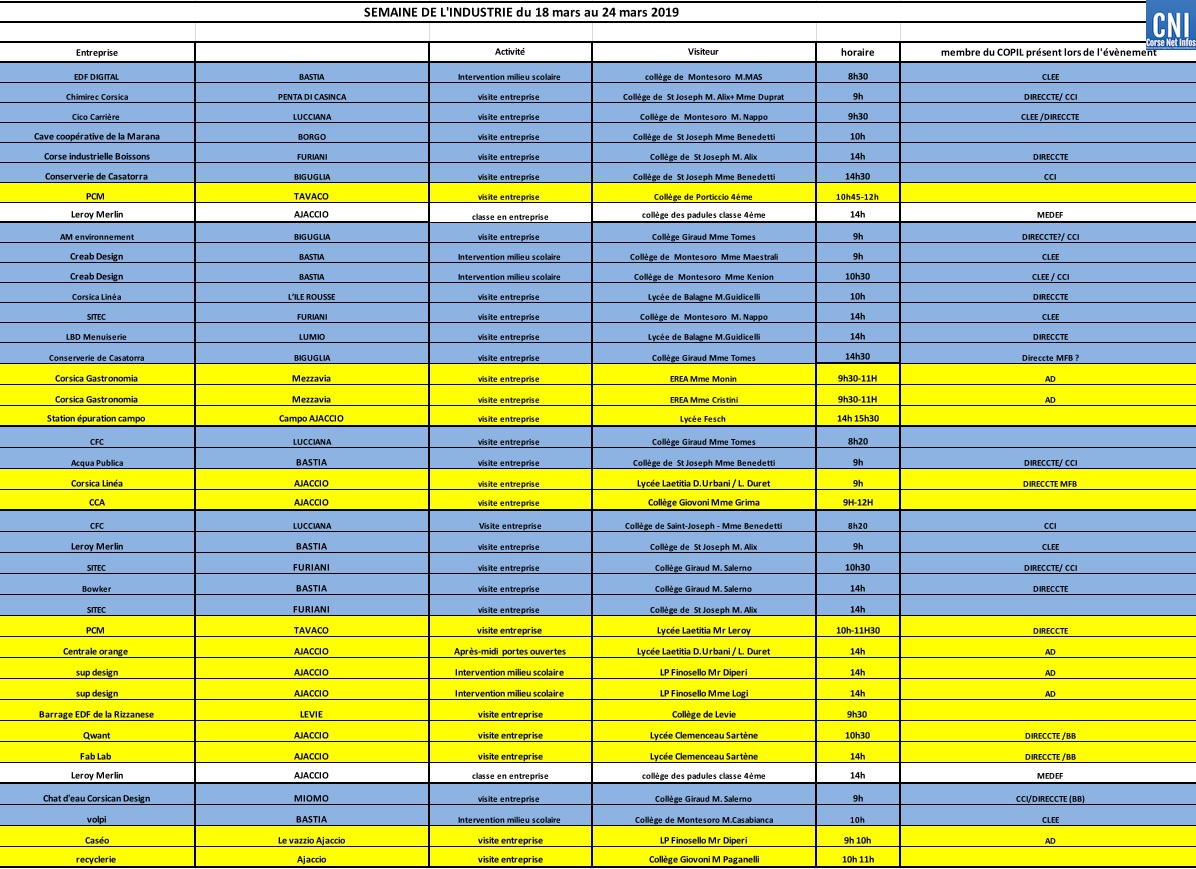 Ce n’est pas la première année que l’académie de Corse participe à la Semaine de l'industrie pour sensibiliser les élèves au secteur industriel et à ses métiers. A cette occasion, des journées portes ouvertes dans les entreprises, visites d'établissements de formation, interventions d'industriels sont organisées avec les collèges et lycées :