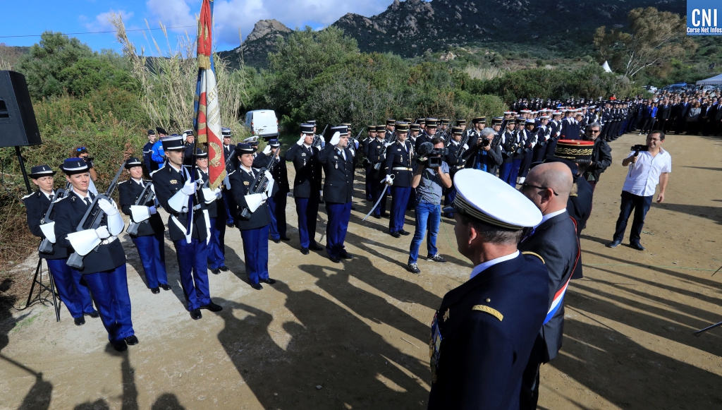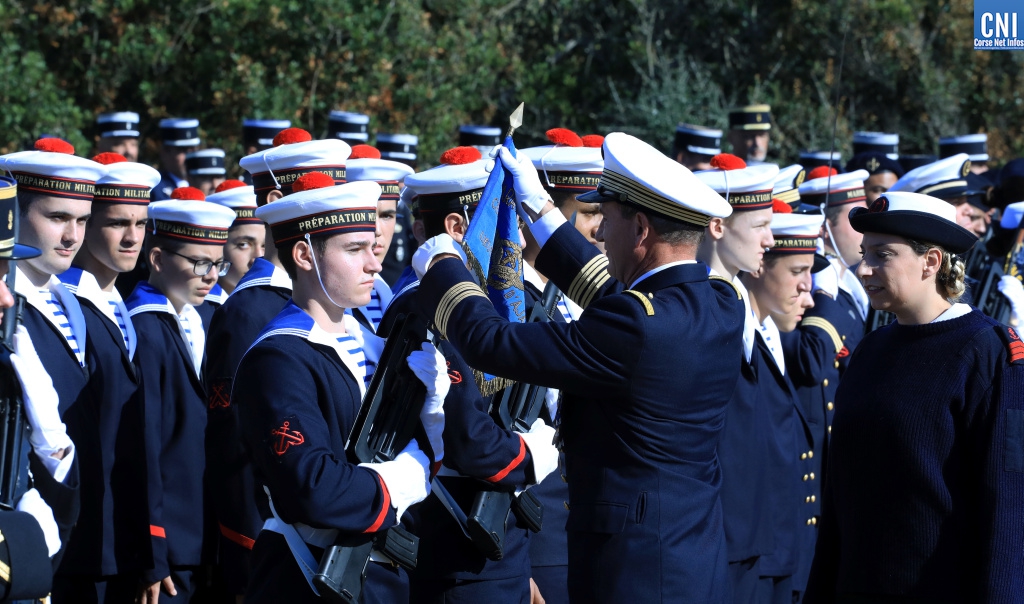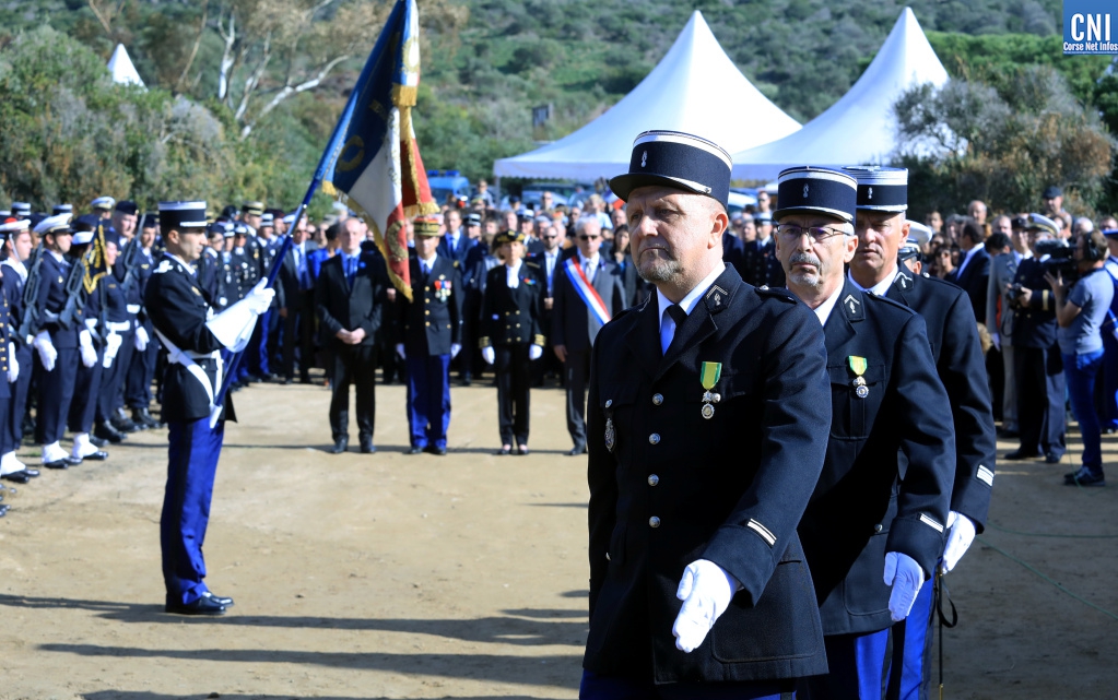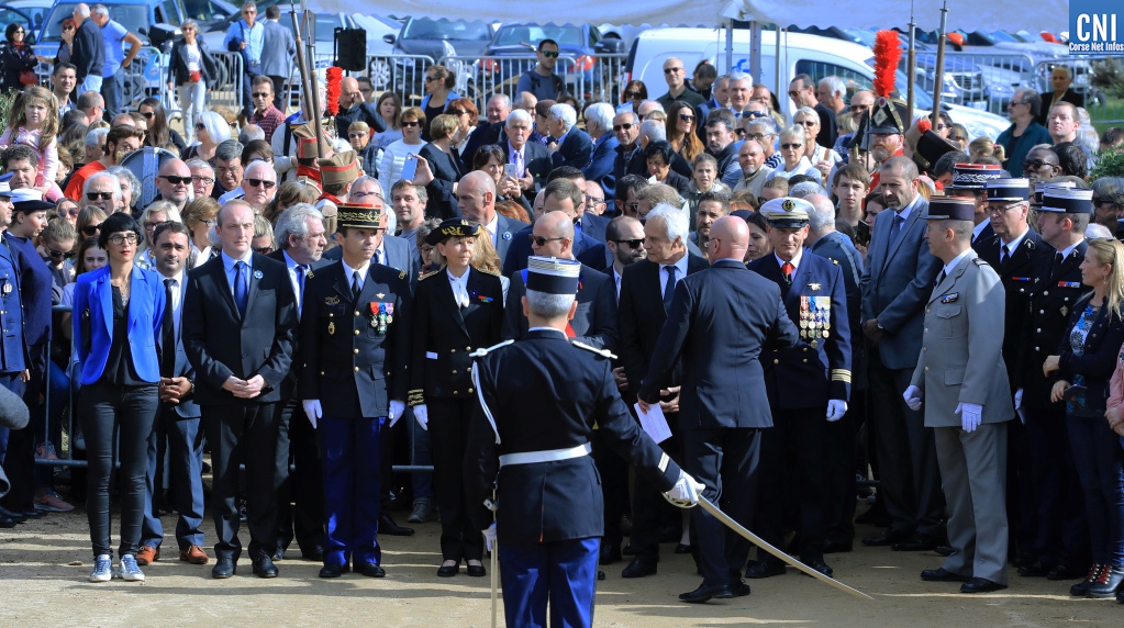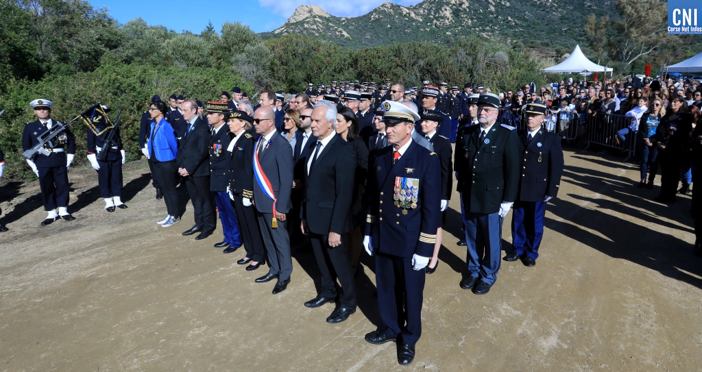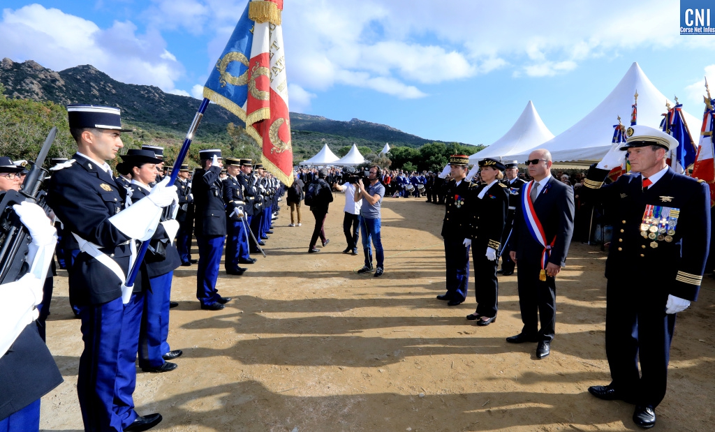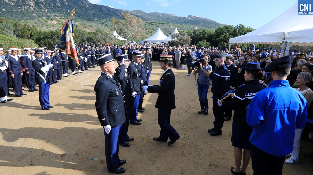 Les représentants civils et militaires ont tout d'abord salué les militaires au son de la Marseillaise. Au banc d’honneur Josiane Chevalier, préfète de Corse, Préfète de Corse du Sud, Laurent Marcangeli, maire d’Ajaccio, Jean Jacques Ferrara, député de la première circonscription de la Corse-du-Sud, le général Jacques Plays, commandant de région de gendarmerie de Corse et commandant du groupement de gendarmerie départementale de la Corse-du-Sud, et Bertrand De Gaullier Des Bordes, commandant de la base navale d’Aspretto et de la marine en Corse. Les deux autorités militaires ont effectué la revue des troupes et son fanion à la préparation militaire marine après la remise des décorations.