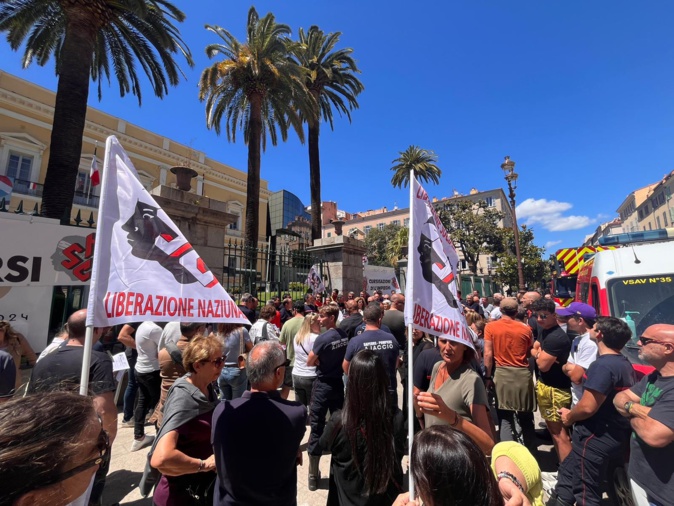 Plusieurs centaines de personnes se sont mobilisés devant la grille de la Préfecture de Région contre l'éventuelle suppression de la base de la sécurité civile d'Ajaccio.