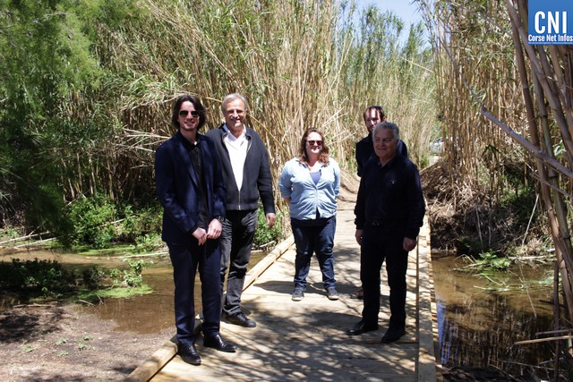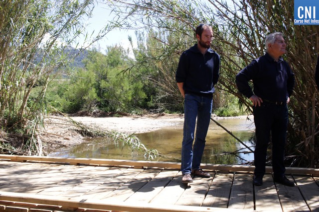 "Cette réalisation initiée par le Pays de Balagne s'inscrit dans le cadre d'une convention de Territoire à Énergie Positive pour la Croissance Verte (TEPCV) du Pays de Balagne, signée par le Ministère de la Transition écologique en mai 2016" précise Jean-Marie Seité, entourée de David Calassa, maire d'Aregnu mais aussi de Maurice Pariggi, maire d'Algajola, propriétaire de la parcelle de terre où cette passerelle a été réalisée.
