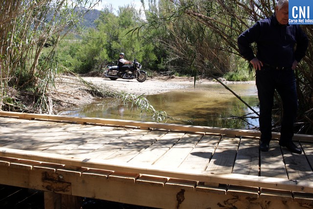 Il était 14 heures ce jeudi 16 mai lorsque Jean-Marie Seité, président du Pôle d'Equilibre Territorial et Rural de Corse du Pays de Balagne a symboliquement ouvert la passerelle pour le franchissement à pied ou en vélo de la petite rivière de Teghella située en bout d'Aregnu-Plage, à la limite de la commune limitrophe de Corbara.