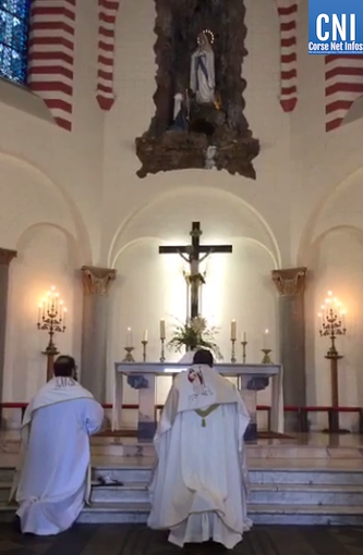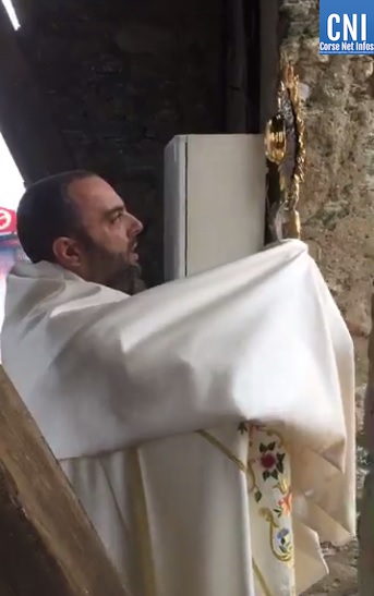 Après avoir récité une prière** puis chanté le «Dio Vi Salve Regina » au sommet de l’église, les prêtres sont redescendus devant l’autel pour prier, prier Dieu, prier le Seigneur, prier la Vierge Marie, l’Immaculée Conception, Saint Joseph, Saint Roch.