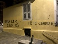 On se souvient que lors du tout premier confinement, des tags similaires étaient déjà apparus sur un des murs du collège Simon Vinciguerra (lire ici). On retrouve d’ailleurs une des inscriptions quelque peu similaire : « Distançons nous d’un maître » qui s’est transformé en « Distancez-vous d’un > maître » accompagné cette fois non plus d’une attaque de pangolin mais d’un « Fuck 5G ». Difficile de deviner une quelconque signature commune à tous ces tags, à moins que « tête chaude » en soit une ? Quoi qu’il en soit, ces nouveaux graffiti sont une affaire à suivre…dans les rues de Bastia et les auteurs vont peut-être s'inspiré des nouvelles annonces gouvernementales. Et donner un peu plus de travail aux employés municipaux.