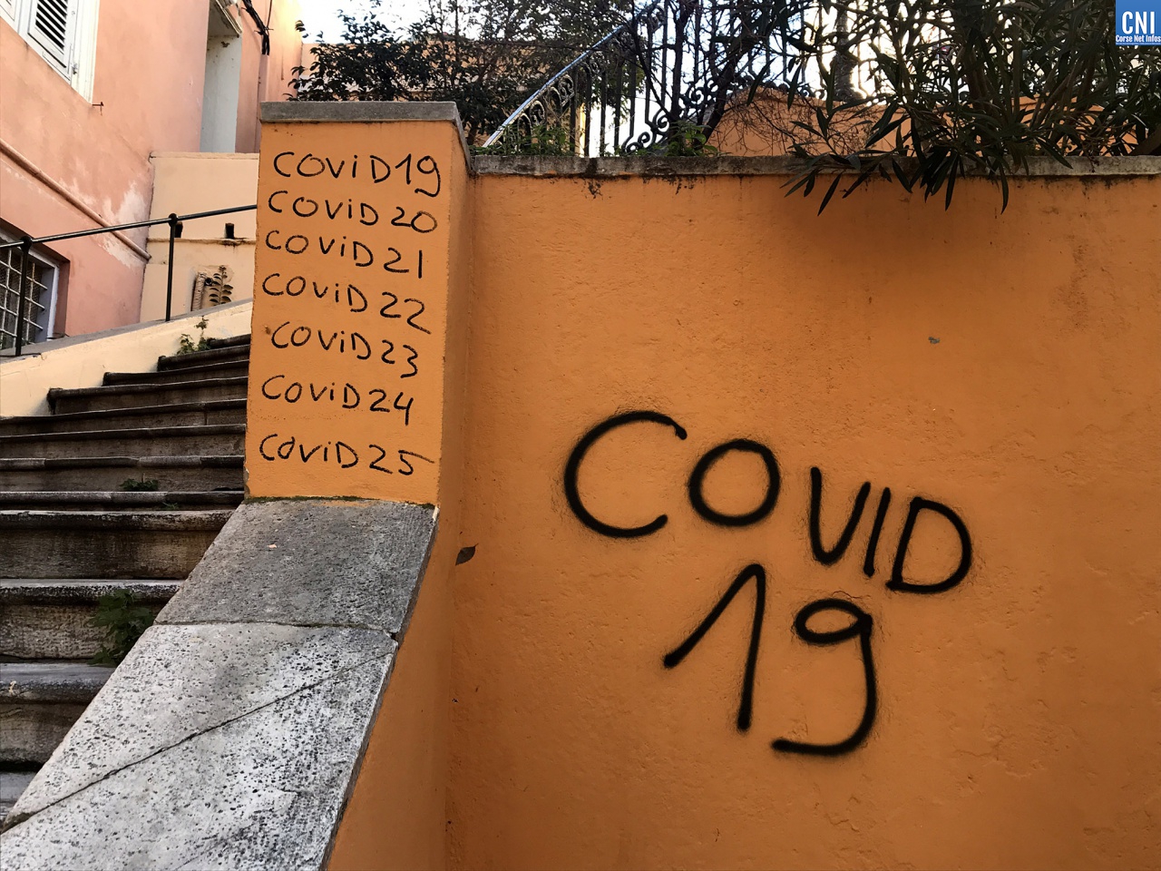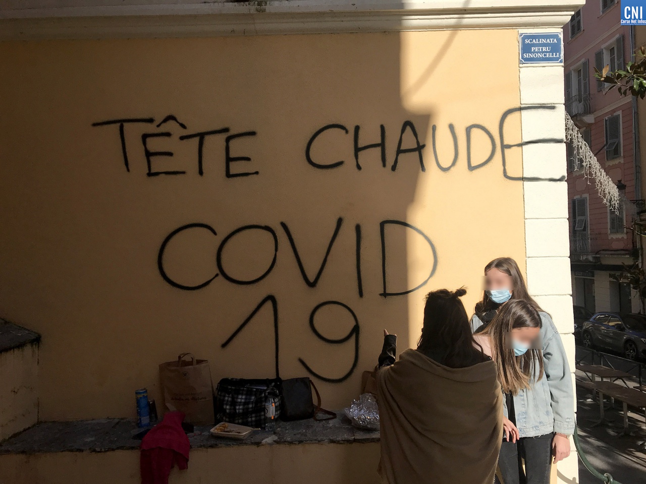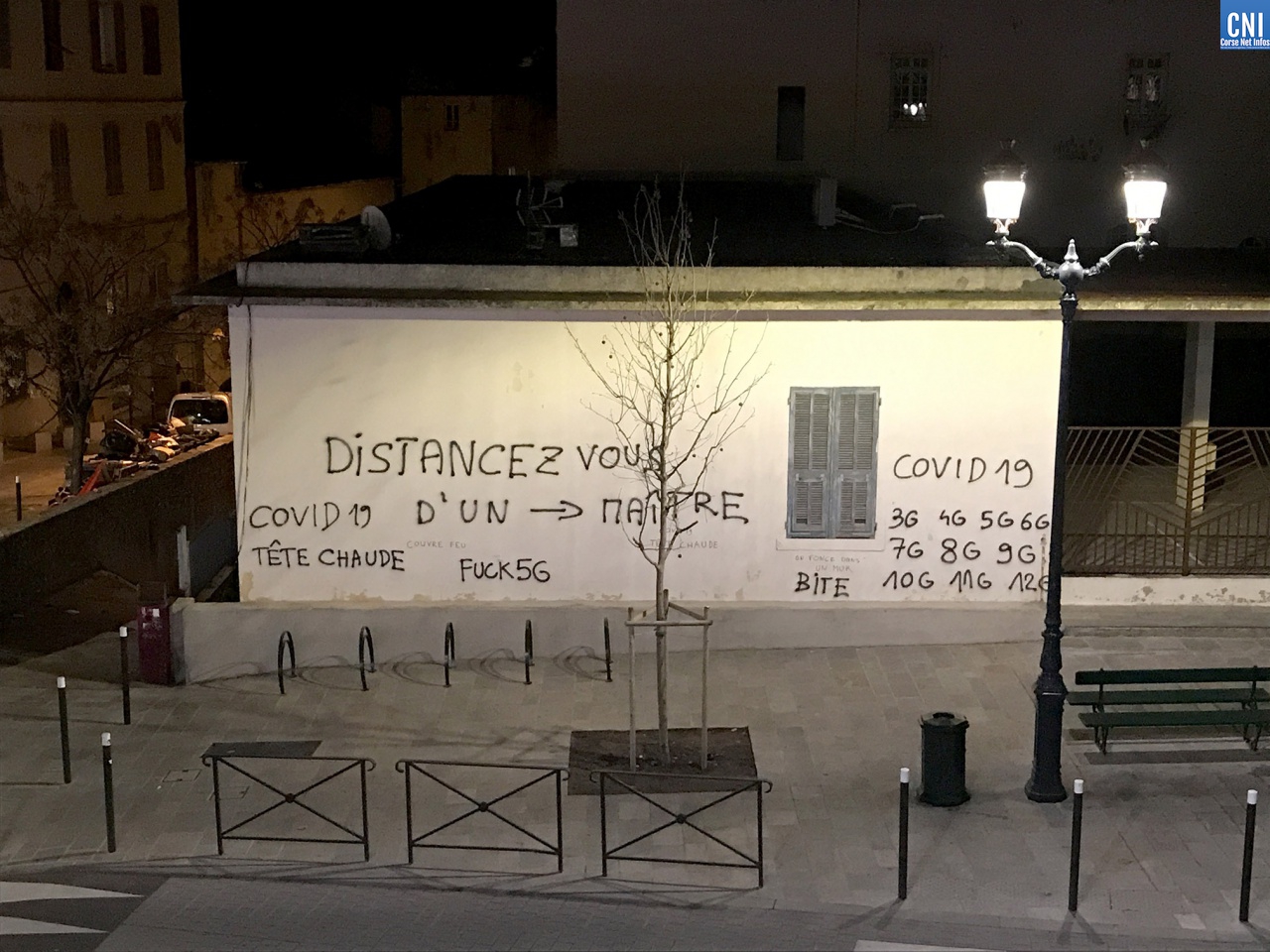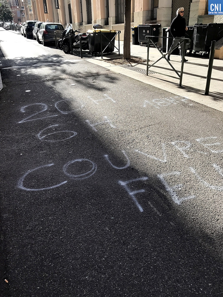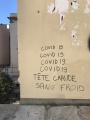 Tôt ce jeudi matin, les promeneurs bastiais on découvert des tags évoquant la situation sanitaire et le Covid-19 dans les rues de Bastia. Particulièrement dans le haut de la rue César Campinchi, à proximité du théâtre et jusque sur les murs du vieux lycée : « Tête chaude, sang froid », « Covid-19 », « Fuck 5G » ou encore « Duralex Castex » ont recouvert les murs immaculés du quartier et jusque le sol de la rue.