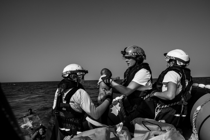 À travers son exposition Rechercher, sauver et protéger, le photojournaliste Michael Bunel donne à voir ce que les chiffres seuls ne peuvent raconter. Depuis plus de dix ans, il documente les parcours de celles et ceux qui quittent leur pays au péril de leur vie. Des rivages libyens à la « jungle » de Calais, en passant par la Méditerranée centrale, ses photographies, en noir et blanc, saisissent l’exil dans toute sa complexité humaine.