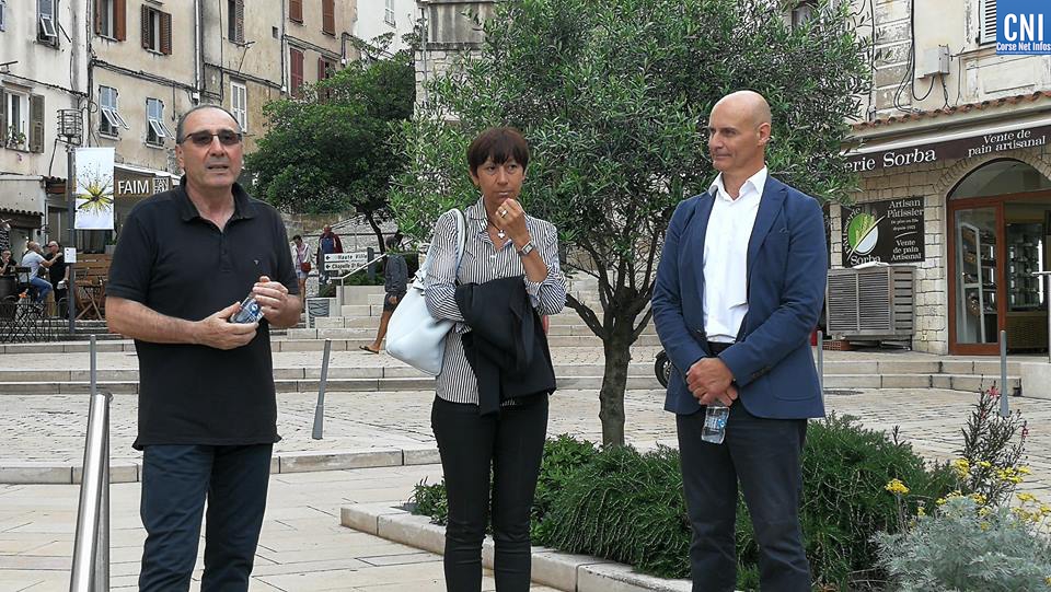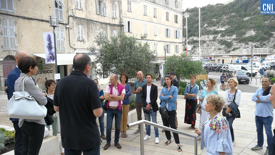 Alain Di Meglio, Adjoint à la Culture de Bonifacio, Michel Giraschi, conseiller à l’Assemblée de Corse, mais aussi Marie-Jo Culioli Vichera, Présidente de l’Office de Tourisme de Bonifacio étaient là pour apprécier ce travail présenté par l’artiste au cours d’une promenade dans la ville qui retraçait la scénographie de l’exposition.