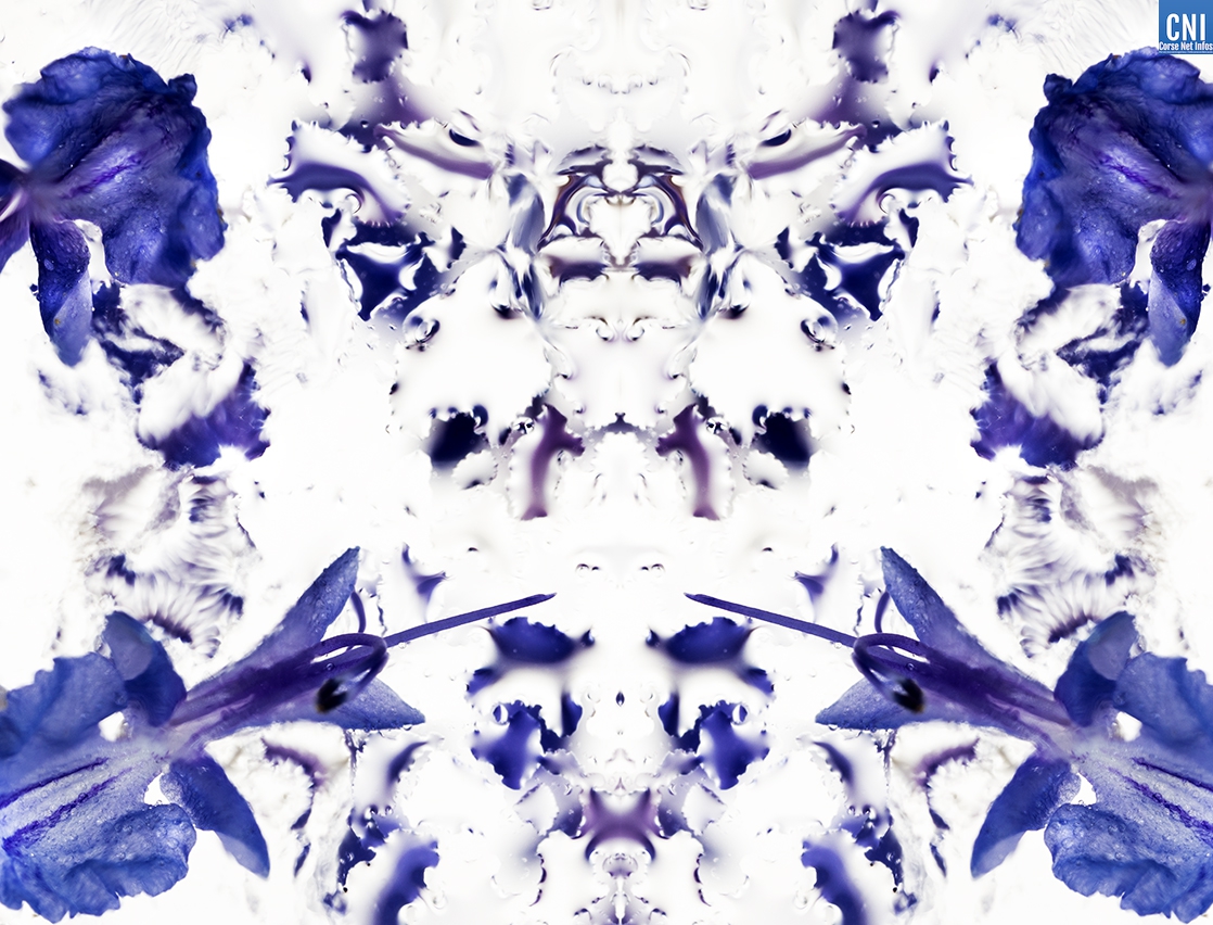 On découvre en contrebas de chaque kakémono quelques cartels de médiation culturelle qui guide le visiteur. Si le VEDA (voir percevoir) est une évidence, l’artiste souhaite amener son public plus loin : vers le SENTA (sentir, ressentir). De l’émotion visuelle jusqu’ au sens de l’œuvre, il nous transporte dans un voyage inspiré de contes et légendes Corse : « Préalablement du choix des fleurs, il y a une compréhension des caractéristiques locales culturelles, de recherches documentaires auprès des personnes ressources pour m'immerger dans un esprit créatif. Je peux partir aussi bien de la fleur que d’une légende ou d’un fait historique. J’évalue le potentiel de corrélation entre la fleur et l’idée à traiter et construit une image avec pour ambition la création d'une émotion visuelle. Par exemple pour l’œuvre « La grande cour du Roi marin », j’ai observé pendant presque 15 jours le romarin sans savoir comment le traiter photographiquement, mais au résultat c’est l’image dont je suis la plus fière. Pour « Camail 1 », qui met en scène le coquelicot, sa couleur rouge sur fond noir m’a tout de suite évoqué le camail de la confrérie bonifacienne de Sainte Croix tandis que pour "Camail 2" ce rouge sur fond blanc m'évoque celui de la confrérie de la saint Barthélémy, qui plus est son dessin naturel en forme de croix lui donne un caractère christique. Il est né cette image » explique Nicolas Roux Dit Buisson.