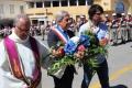Les récipiendaires regagnaient les rangs avant qu'une jeune fille prénommée Brune ne lise le message de l'UFAC: " Le 8 Mai 1945, l'Allemagne hitlérienne capitulait sans condition. Au jour anniversaire de cette Victoire, devant chaque Monument aux Morts, unis et rassemblés, les Françaises et les Français se souviennent et rendent hommage à leurs morts, à tous ces soldats de la Métropole, d'Outre-mer, des Forces Alliés, dont le sacrifice sur les différents théâtres d'opérations ont permis cette victoire. Les Françaises et les Français se souviennent et honorent la mémoire de toutes celles et tous ceux qui ont été victimes de l'atroce réalité des événements de la Seconde Guerre mondiale : les emprisonnés, torturés et abattus, les victimes civiles, les combattants de toutes armes, les résistants, déportés, fusillés, massacrés, prisonniers, pour leur courage, leur esprit de sacrifice et leur sens du devoir. Ils ont sacrifié leur vie pour la France, la Paix et la Liberté. Rendant hommage à toutes les victimes de ces tragédies, les Françaises et les Français, également révoltés par les actes de barbarie perpétrés au cours de ces mois passés, ont pris conscience que la Paix et les valeurs humanistes qui sont les leurs sont particulièrement fragiles. En ce jour anniversaire où les Françaises et les Français se souviennent, l'Union Française des Associations de Combattants et de Victimes de Guerre (UFAC), invite chacune et chacun, particulièrement les jeunes, à la vigilance et à œuvrer, avec courage et persévérance, pour un monde de fraternité, de solidarité et de paix. Vive la République ! Vive la France ! ".