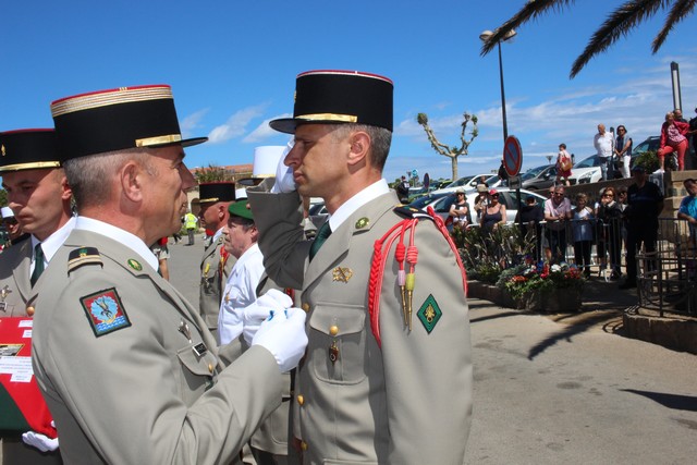 Le Lieutenant-Colonel Favrot, commandant par suppléance le 2e REP de Calvi passait les troupes en revue, avant de procéder à une remise de décorations.