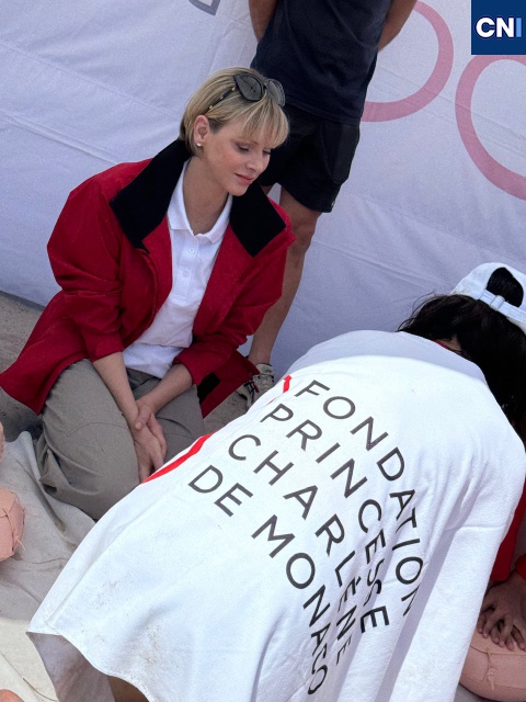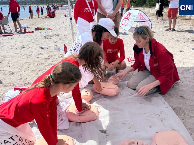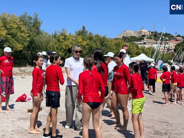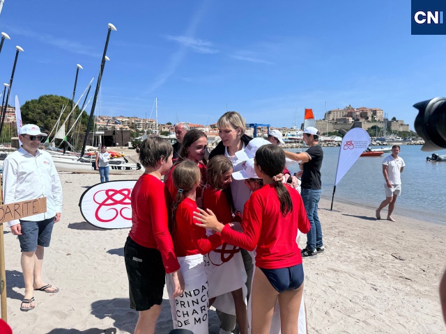 La journée a été couronnée par la visite surprise de la princesse Charlène de Monaco, qui s'est rendue sur la plage pour rencontrer les jeunes stagiaires après un passage en hélicoptère au-dessus de la baie de Calvi.