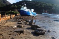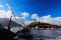 La tempête Adrian a laissé des traces, notamment sur la plage où un bateau touristique s'est échoué et que des voiliers ont été drossés contre les rochers.