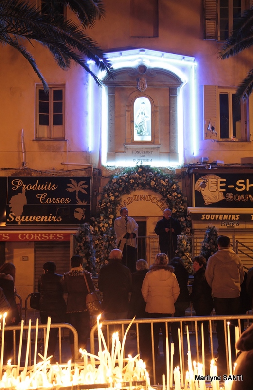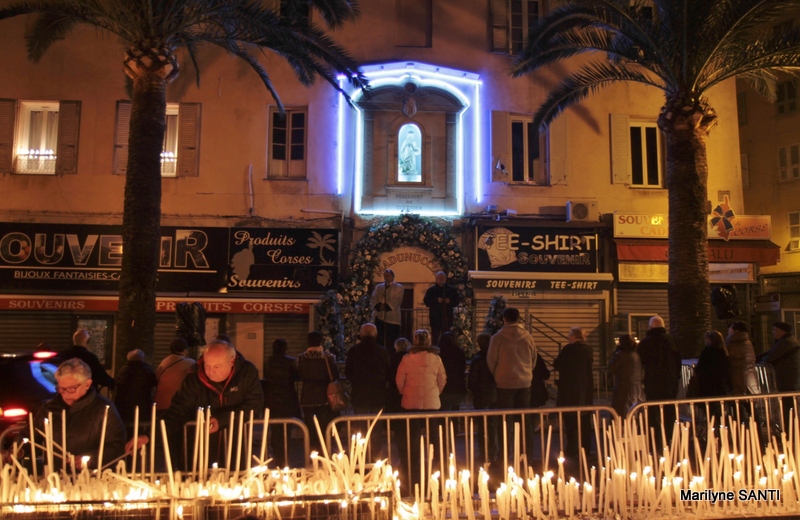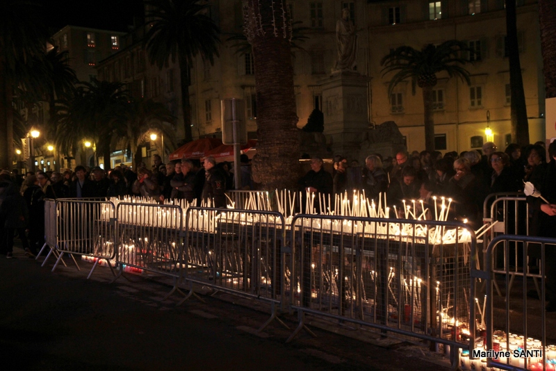 A toutes les lueurs des bougies de la place répondent celle mises par les ajacciens à leur balcons et fenêtres.