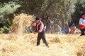 Les graines sont alors séparées de la paille qui s'envole avec l'aide des paysans, qui avec « e palmule », des fourches en bois, favorisent la séparation. La paille est alors mise en tas et la poussière, « A bula », est enlevée avec des grosses pelles.